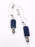 Deep blue beads cut from imperfect ancient Roman glass and small accent bits of the same glass in a frosty white, finished with faceted pyrite and suspended from sterling silver nailheads. Just about 3 inches long.