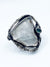 This icy pale blue topaz reminds me of a frozen pond. Surrounded by twisting vines of torched sterling wire and offset with a deep blue tourmaline. A statement ring that capture attention. Ring width is about 2 inches and is just shy of size 6.5. Ring cannot be resized so please be sure when ordering.