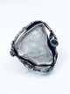 Barrel of sterling silver wires encases a gorgeous gold-toned freshwater pearl. Height of barrel is about 1.25" and width is about .75" Ring is sized at 5.5.