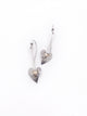 Modern hoop style in sterling silver with fixed heart focals. Post style. About 2 inches long.
